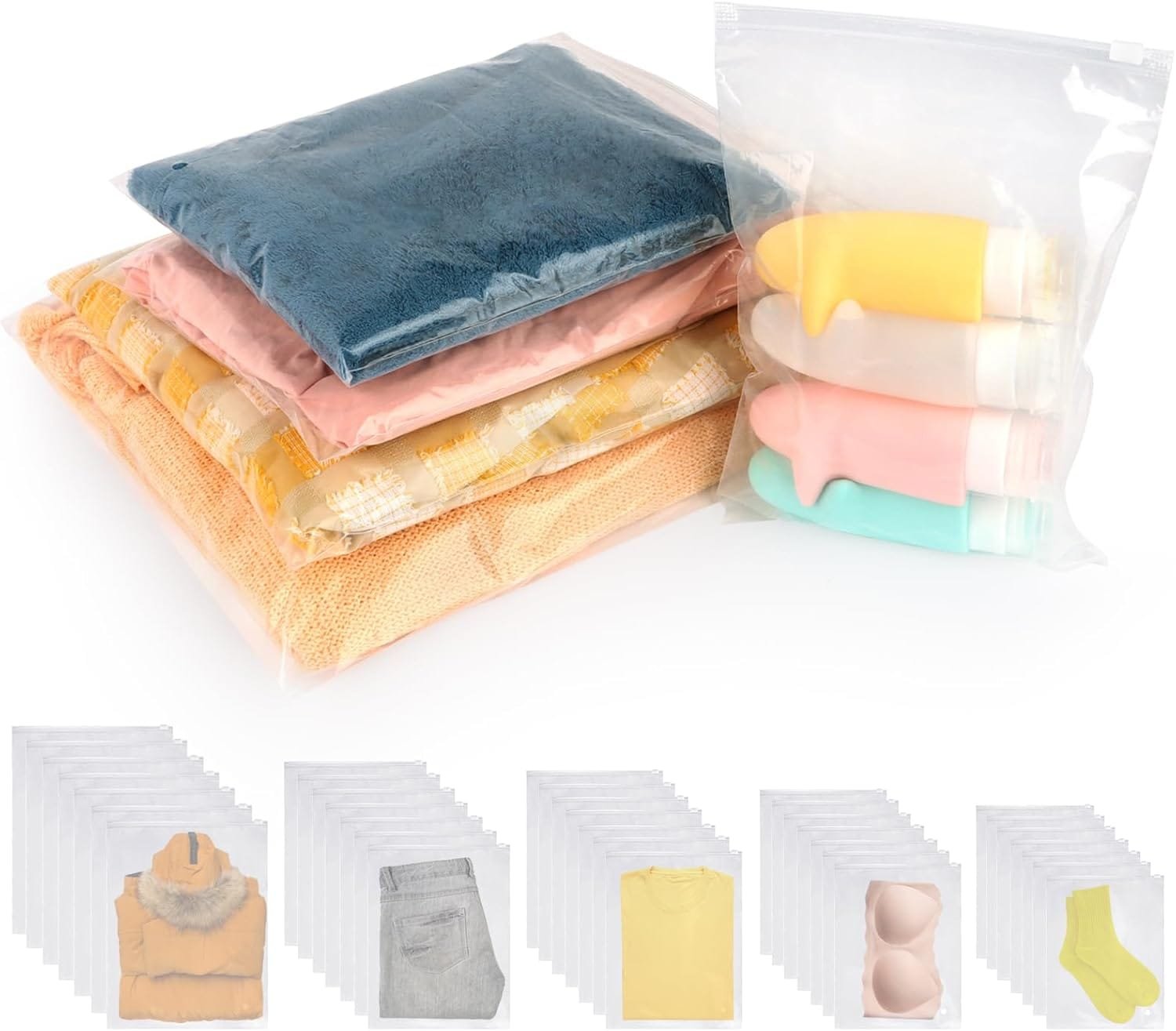 35 Piezas Bolsas de Almacenamiento de Viaje,Reutilizable Bolsa de Transparente Esmeriladas,Organizadores de Embalaje de Viaje,para Ropa, Bragas, Zapatos, Cosméticos,Artículos de Aseo