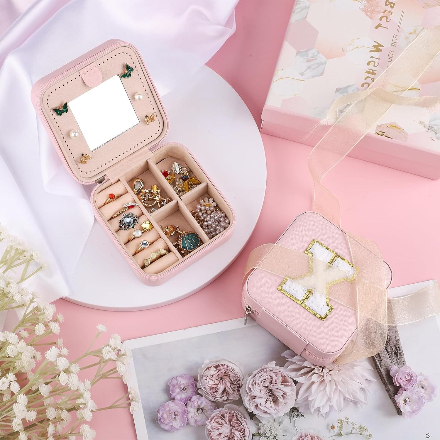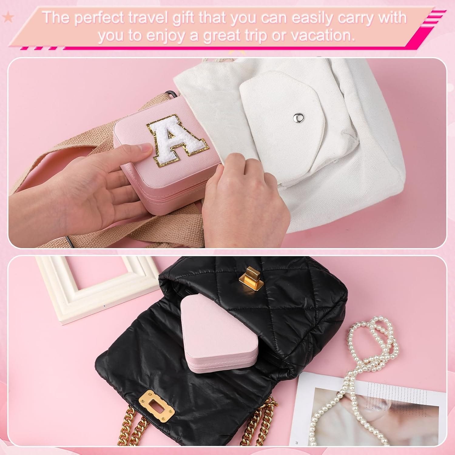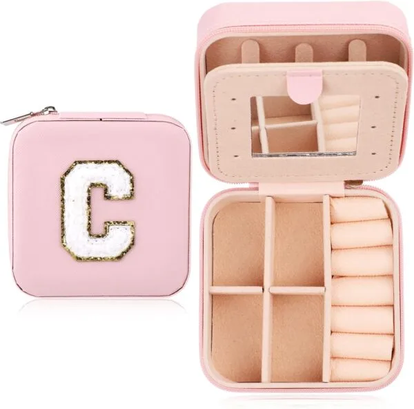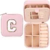 BOXOB Joyero de Viaje Pequeño, Portátil Mini Joyero de Viaje Piel Sintética Joyero Viaje Mujer Mini con Letra Exquisita para Mujeres Niñas Artículos Esenciales de Viaje (Letra C)