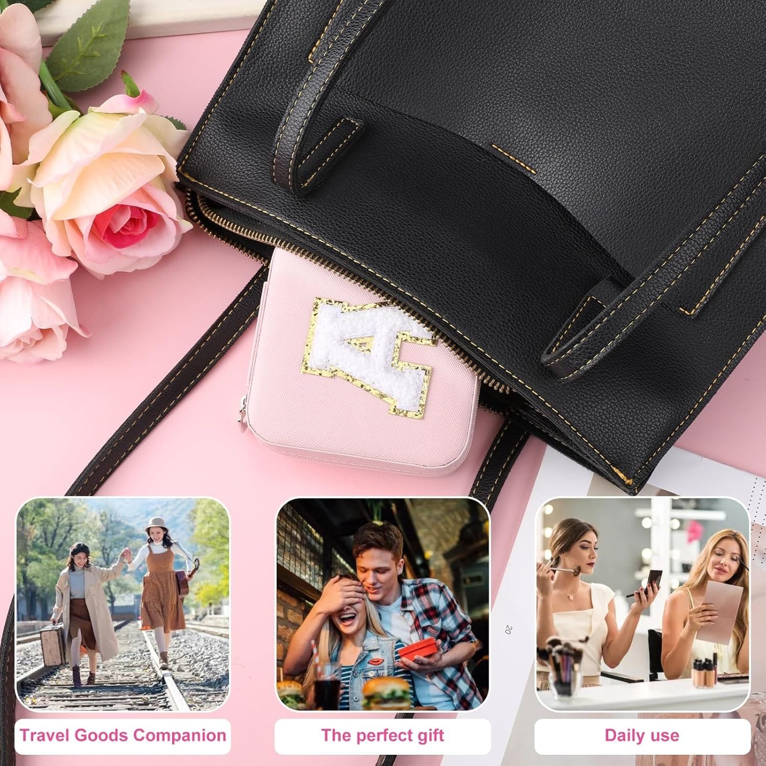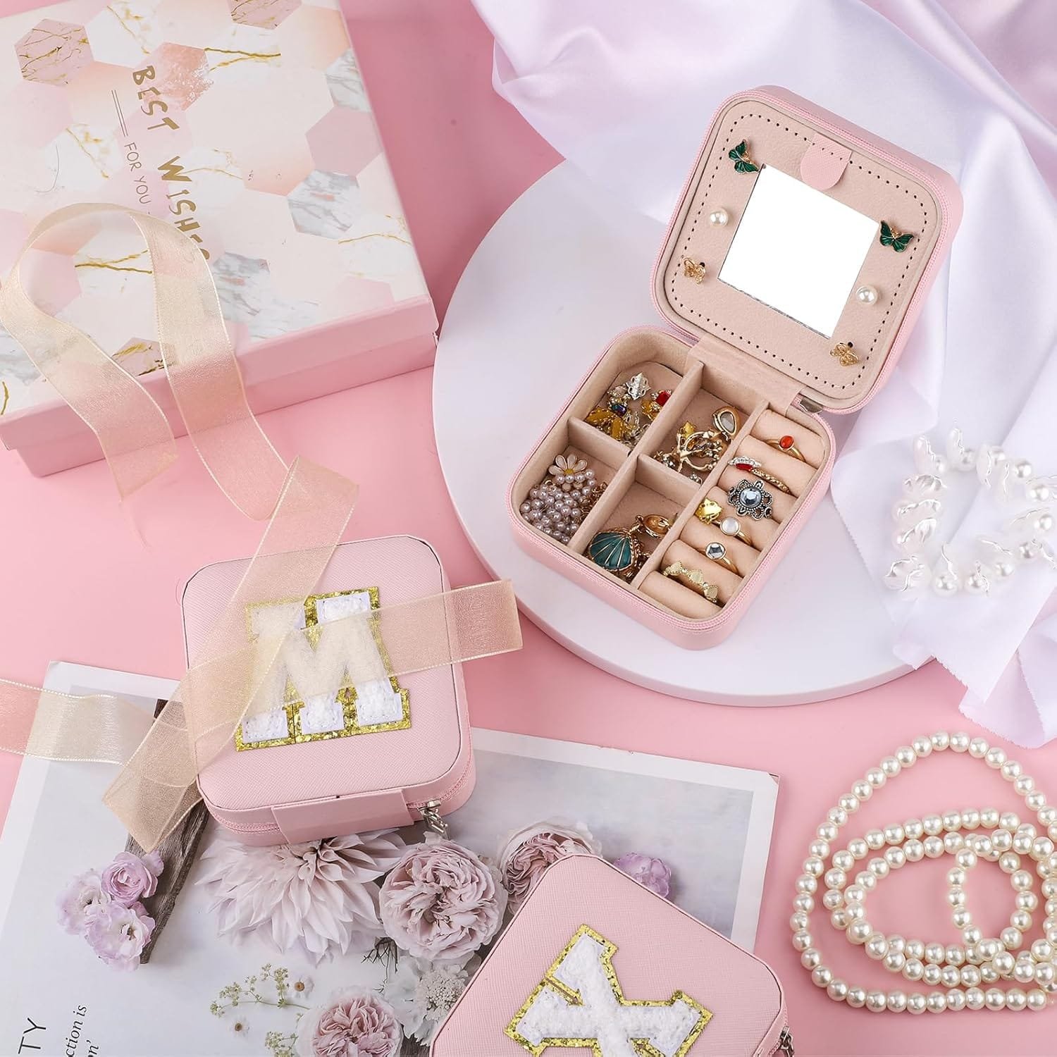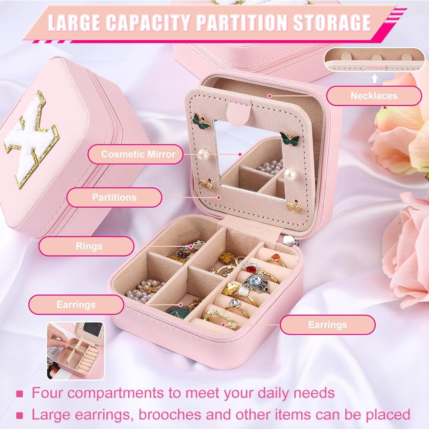 BOXOB Joyero de Viaje Pequeño, Portátil Mini Joyero de Viaje Piel Sintética Joyero Viaje Mujer Mini con Letra Exquisita para Mujeres Niñas Artículos Esenciales de Viaje (Letra C)