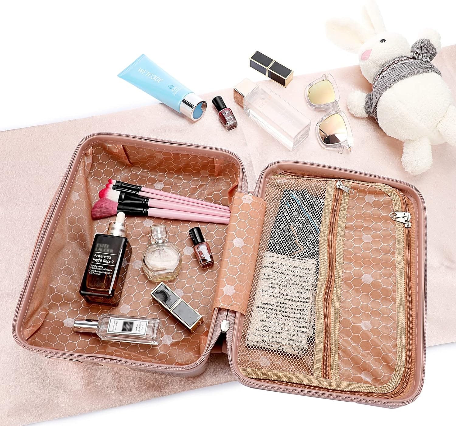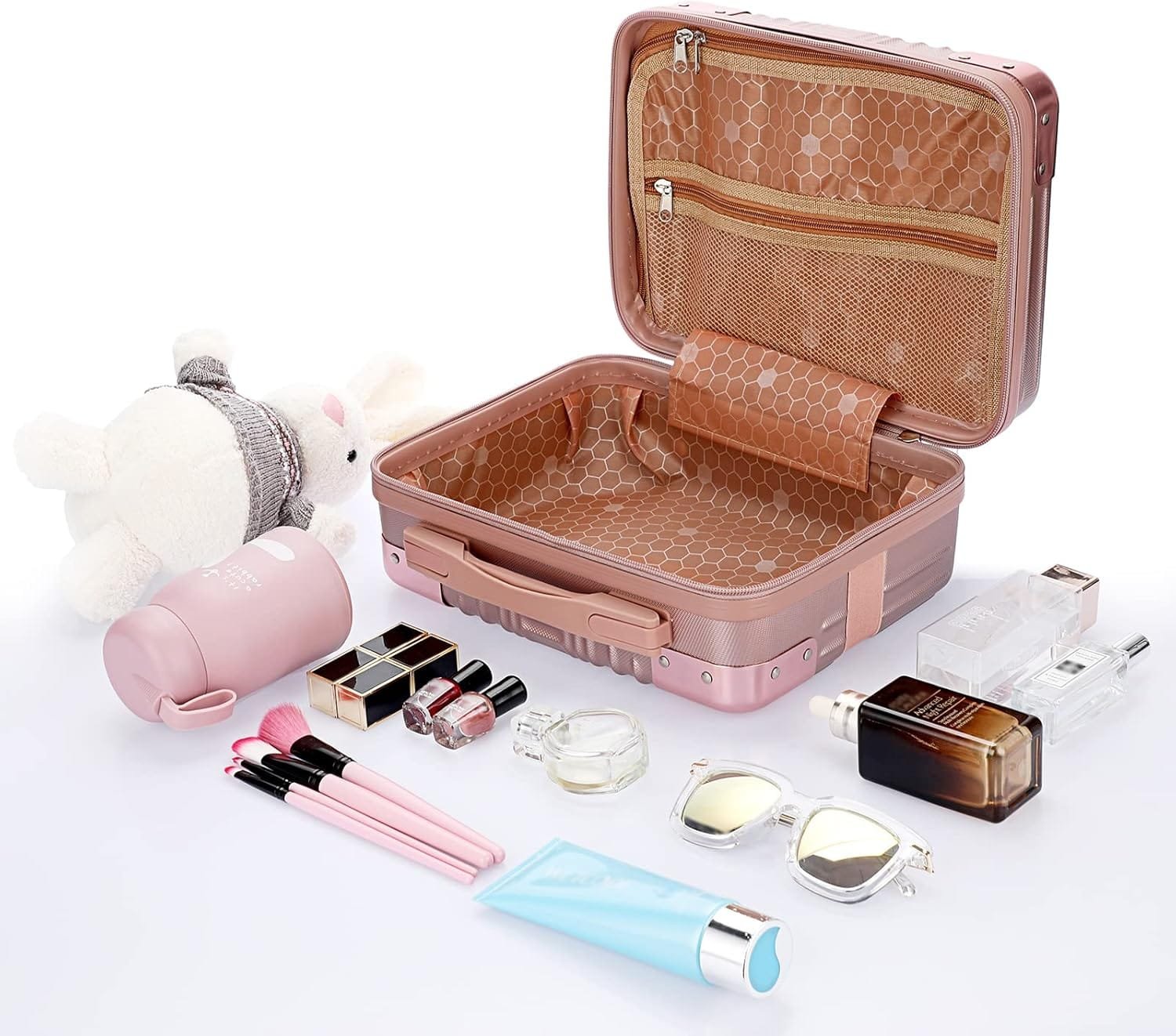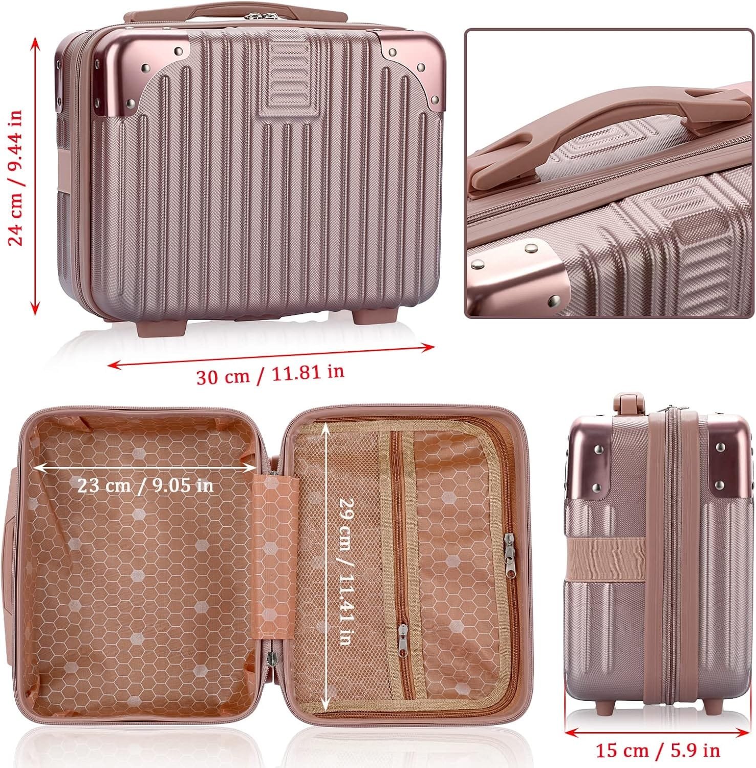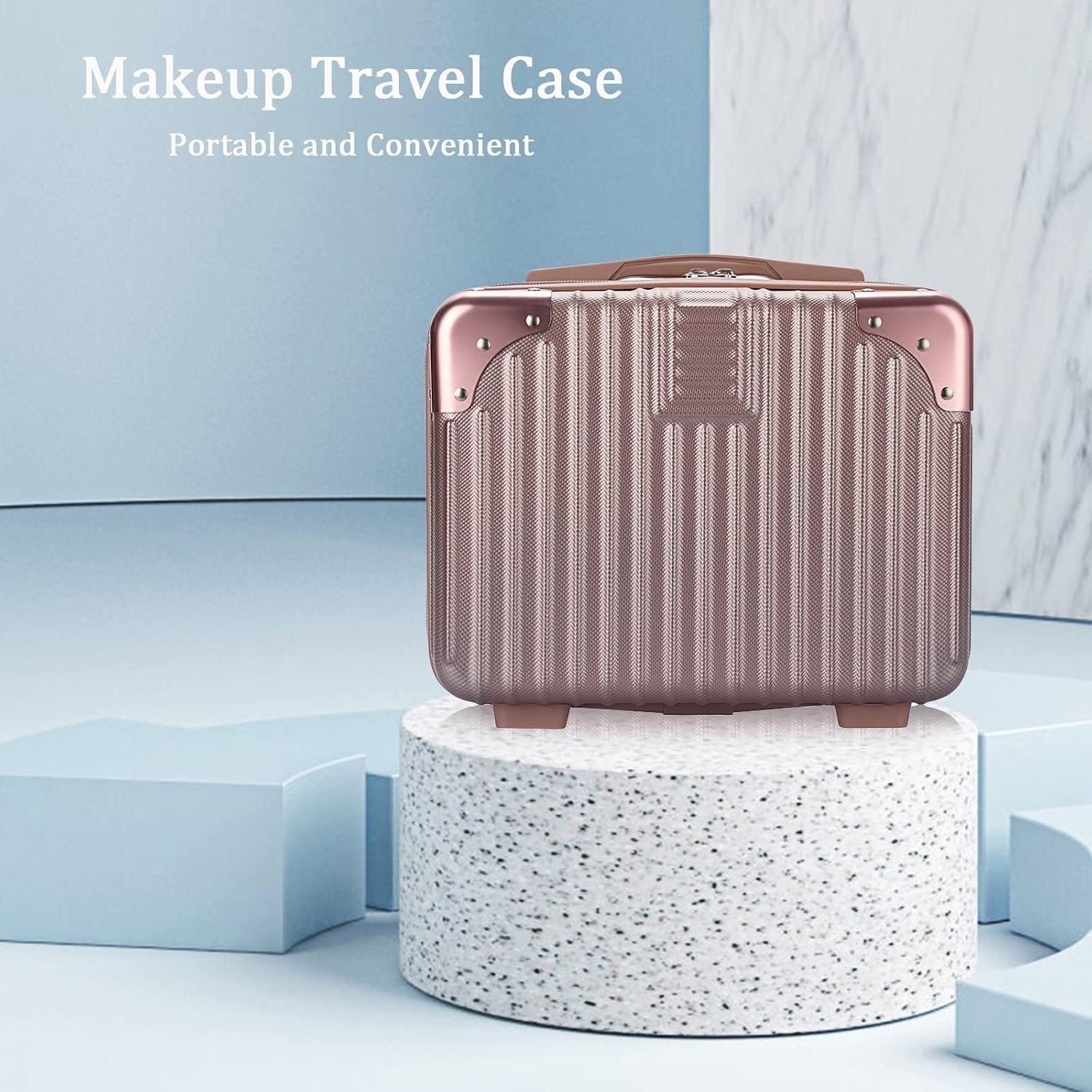 Tolida Mini Maletín de Viaje Neceser ABS Estuche de Viaje Práctico Maletín de Almacenamiento Oro Rosa para Cosméticos Cuidado de la Piel Artículos de Aseo para Mujer Niña