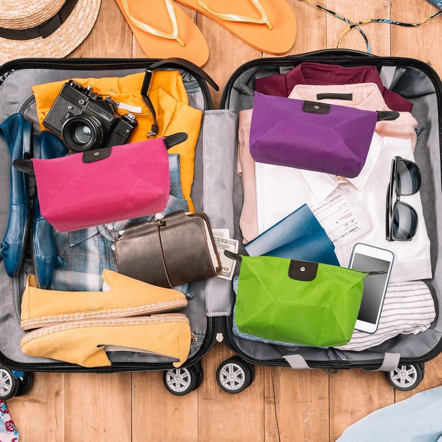 TRIXES Set di 3 borse da viaggio mostrati in una valigia pronta per il viaggio TRIXES Set di 3 borse da viaggio mostrati in una valigia pronta per il viaggio