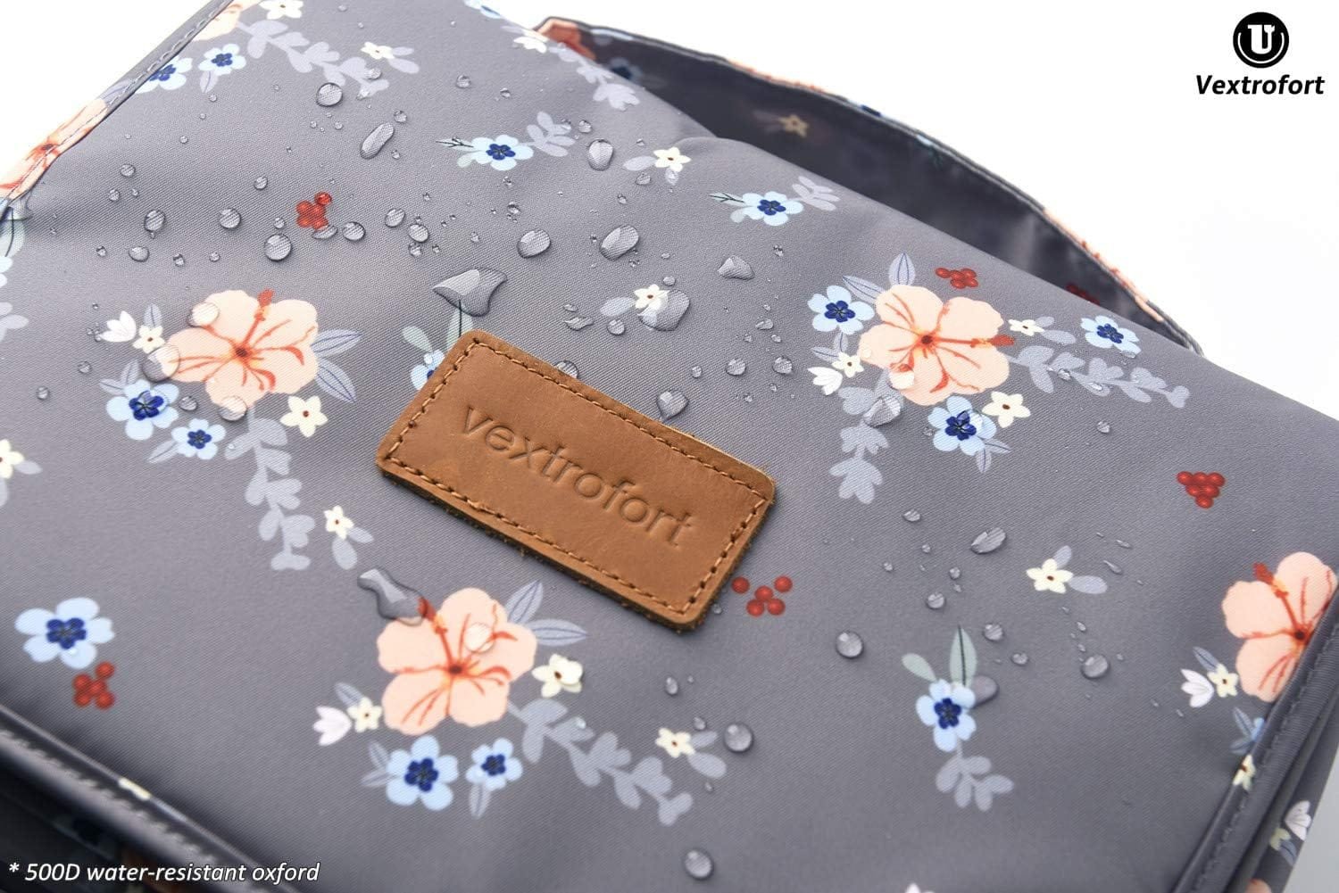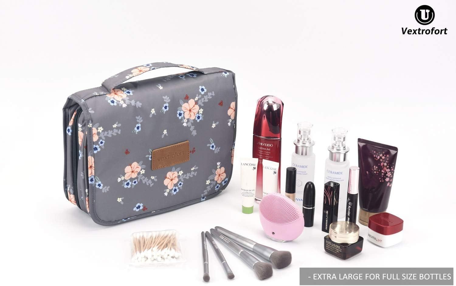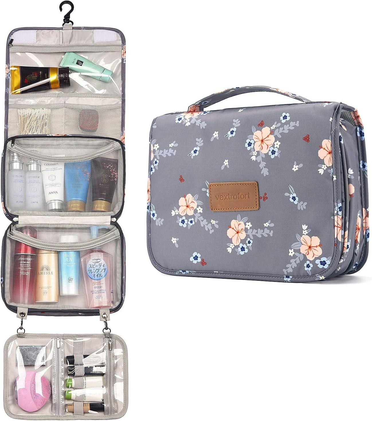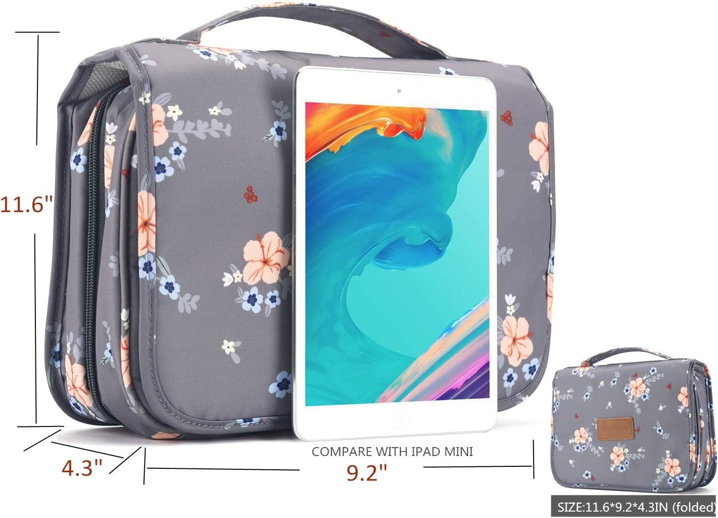 VEXTROFORT Neceser para mujer, bolsa de maquillaje grande para colgar, resistente al agua, para artículos de tocador, cosméticos, cepillos, flores azules, bolsa de maquillaje colgante de viaje