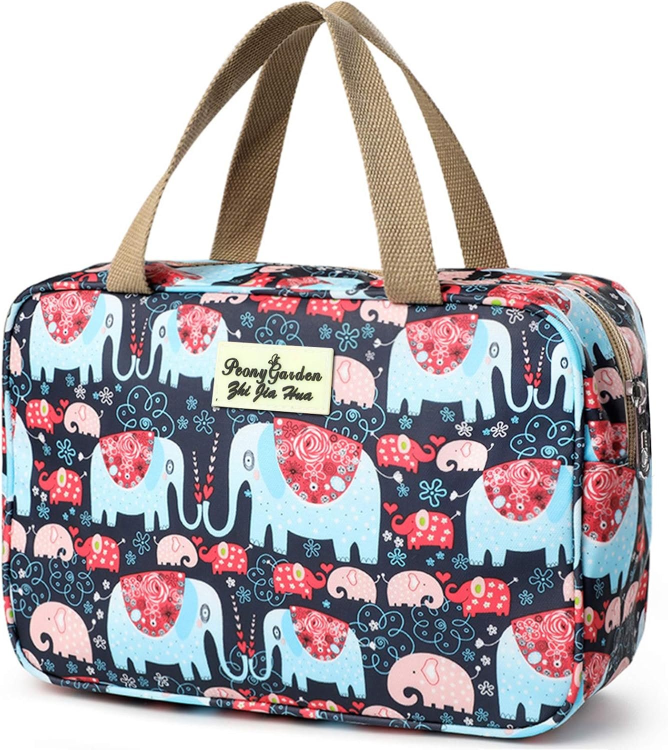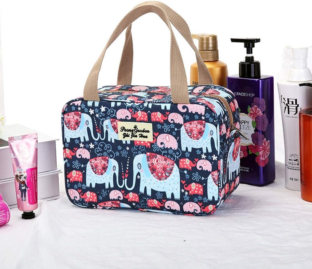Very good size, waterproof lining inside is a very good idea, sturdy zip, good size handles as well, can get a lot of toiletries inside, extremely well made, fun design on outside, good price, I’m pleased with my purchase, good for holidays, hospital, and at home, very versatile,